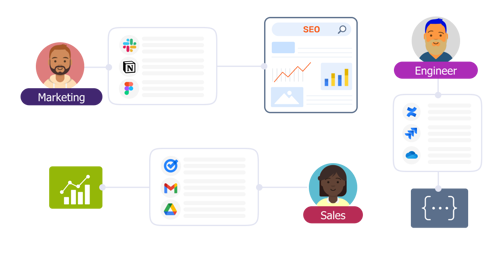 Unified search across information scattered across various apps within your company in seconds.